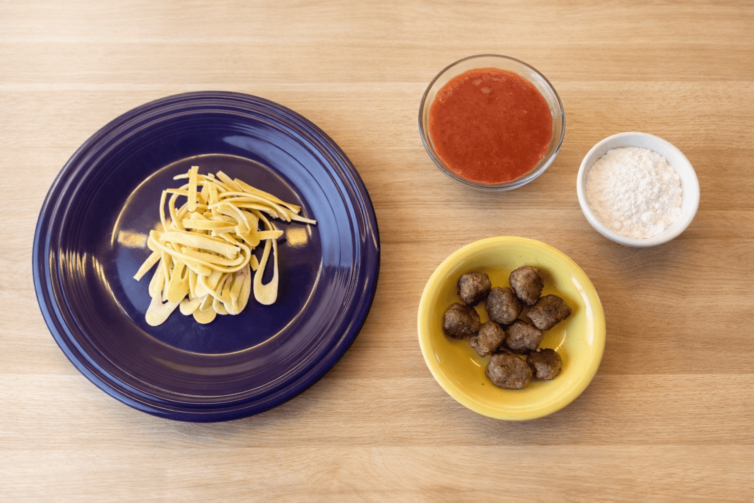 Cook your breakfast sausage and cut or shape it into small round pieces so they resemble meatballs.