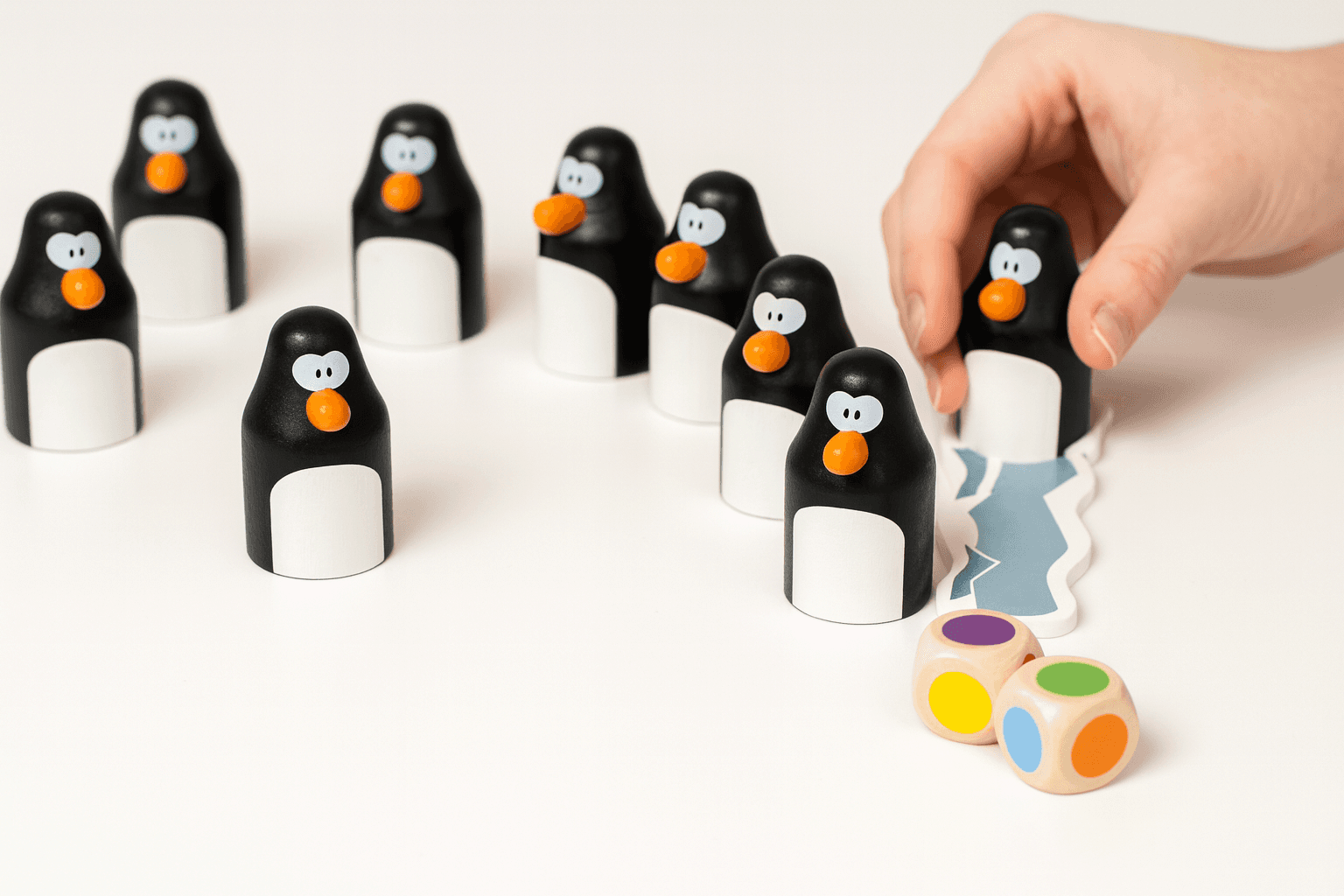 Pengaloo is an adorable color matching and memory game that introduces kids to basic gameplay mechanics while teaching color recognition and focus. Typically for ages 4 and up, we introduced this to our kids around age 2. In this game, players take turns rolling dice to reveal colors, then they try to find eggs hidden under wooden penguins that match those colors. Using memory and a bit of luck, players lift the penguins to see if they can find a hidden egg that matches the rolled dice. If they guess correctly, they get to keep the penguin and egg on their iceberg.