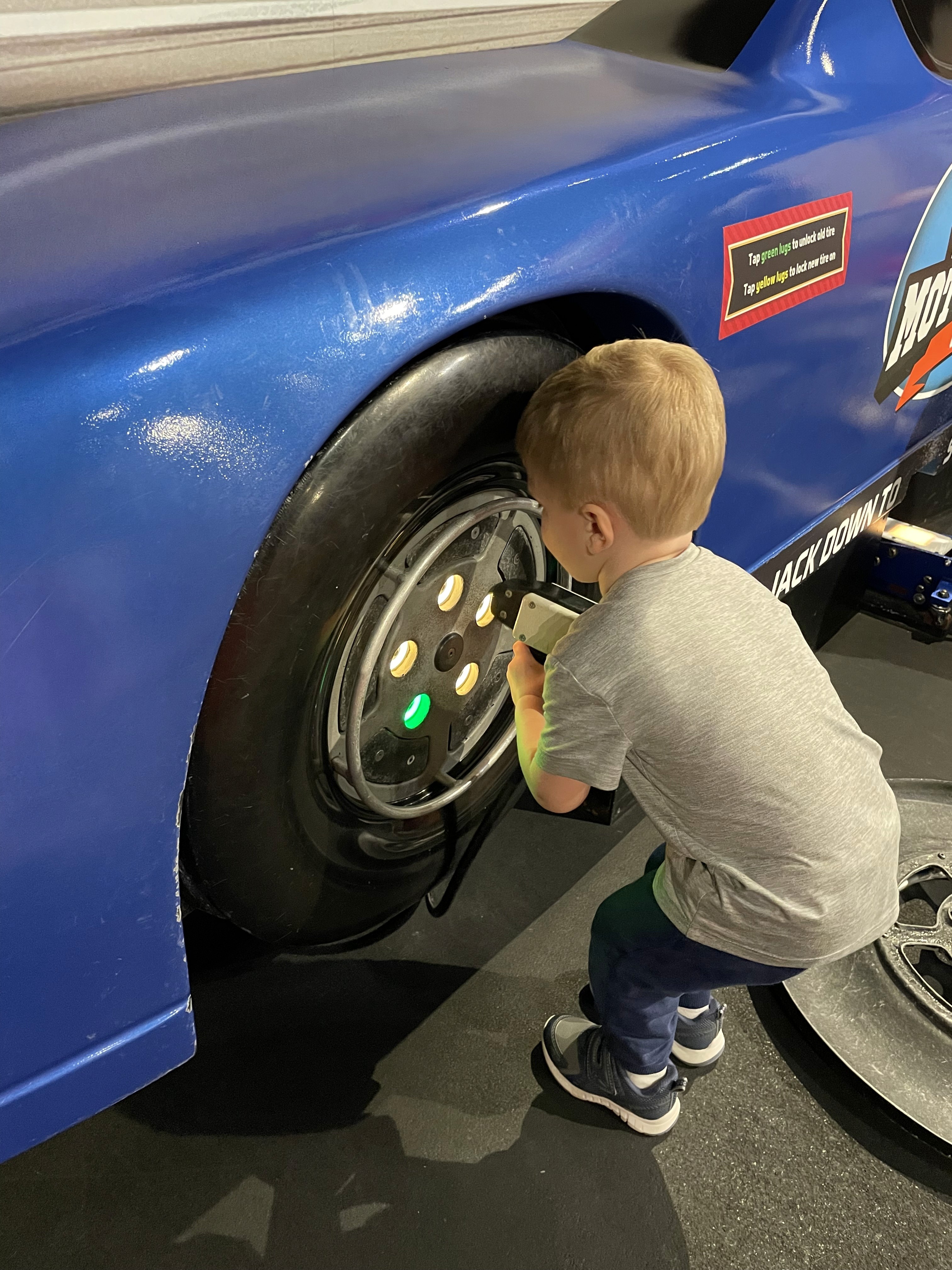 This was hands down our favorite section of the entire museum! It is incredible! It’s a 7.5 acre outdoor sports park where kids can try basketball, football, soccer, baseball, hockey, golf, tennis, track & field, and even pedal car racing. Each sports section is highly interactive and engaging. It’s high-energy, well-staffed, great for burning off steam and so fun! Plus, parents can play too! You could easily spend a majority of your time in this one exhibit.